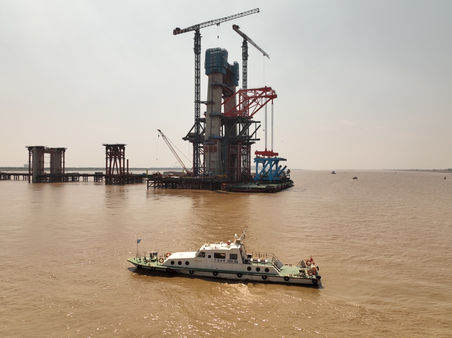 崇启公铁长江大桥钢桁梁吊装工程将持续一年时间,崇明海事局表示,将密切跟踪工程建设进展,根据实际情况动态调整安全监管和服务保障方案;同时,加强与施工单位、警戒维护船艇及相关人员的沟通协作,共同应对施工过程中可能出现的各种风险和挑战,确保大桥施工建设和水上交通秩序“双安全”。